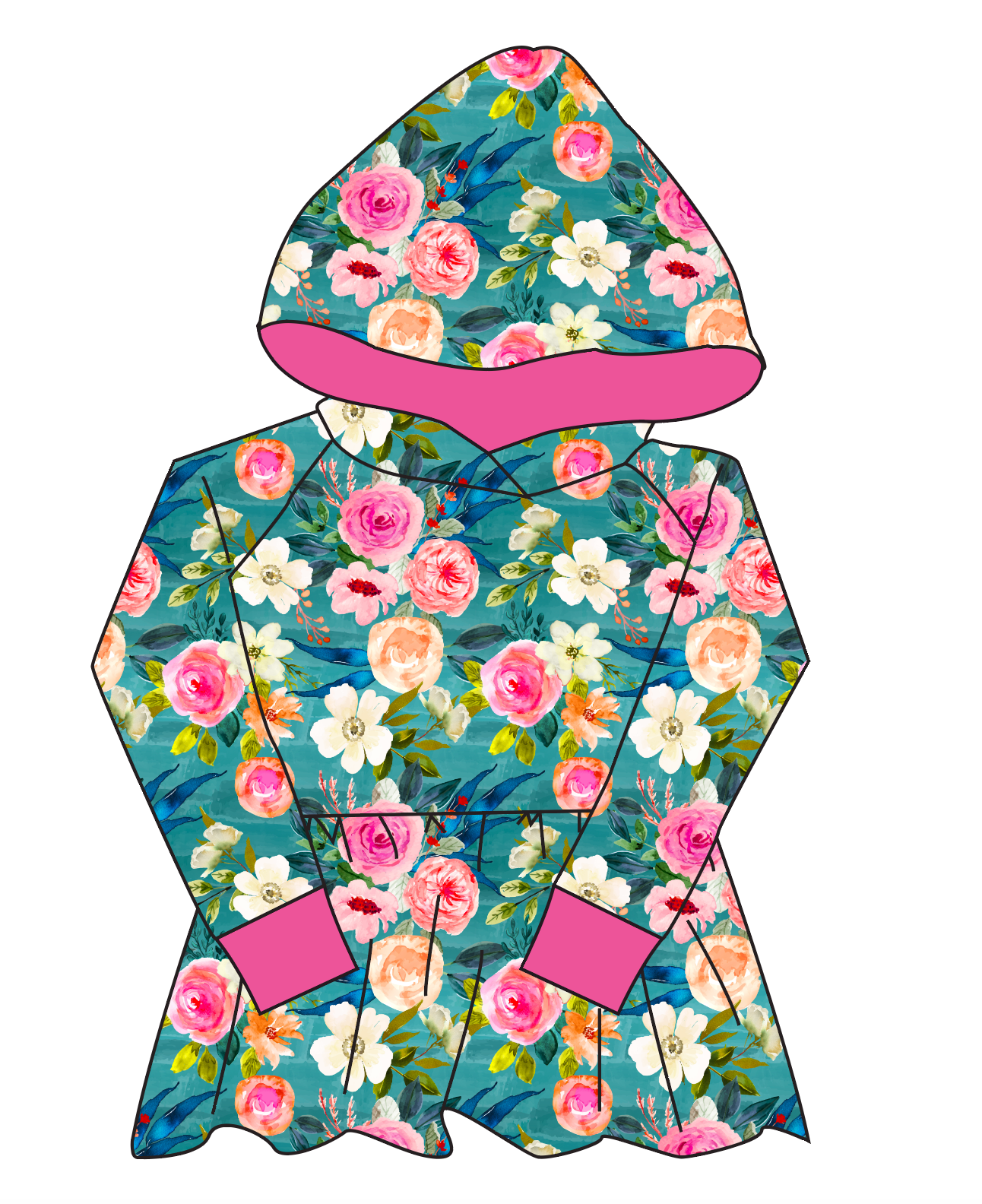Teal Floral Peplum Hoodie (or Crewneck)
