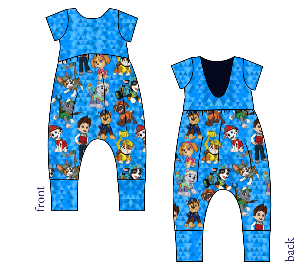 Blue Pup Boogie Low Back Romper and Bubble Romper