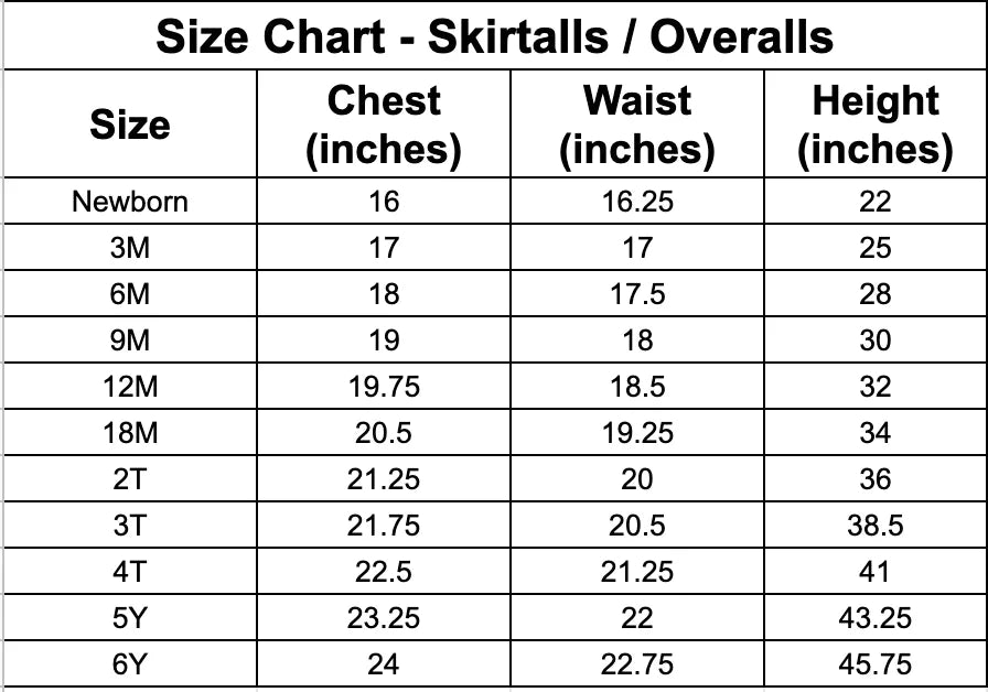 Channel your inner Cher Horowitz in these fashionable skirtalls, brought back straight from the 90s! The skirtall features a button closure at the front, and snaps at the back. We have 3 different snap heights so you can choose the perfect length for your kiddo!