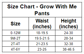Since these pants are grow with me, they will last so much longer! All of our grow with me items can be worn across at least three sizes. Simply roll the waistband down to fit the smallest size and unroll as your kiddo grows! Babies and kids grow so crazy fast, so get the biggest bang for your buck and grab something that will actually fit them for longer!