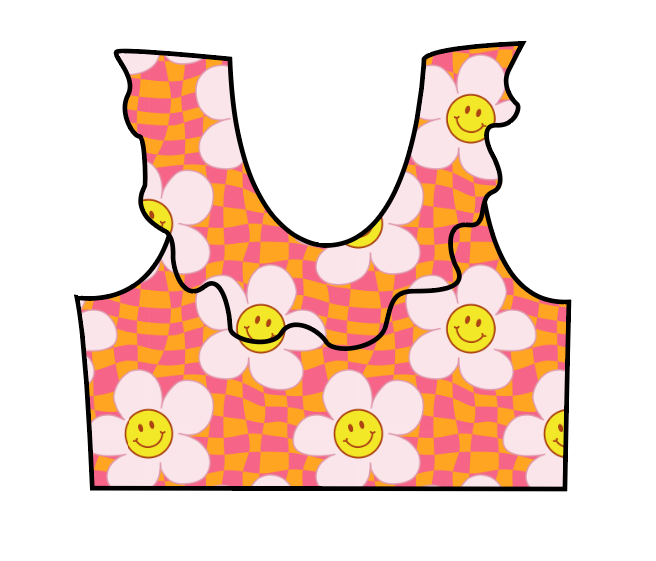 Smiley Floral Swim Ruffle Neck Swim Top